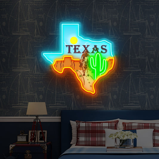 Texas UV Printing Acrylic LED Neon Sign,Home Decoration Texas Map LED Sign,Texas Shape Wall Art, Gift For Cowboy,Cow boy room Decor